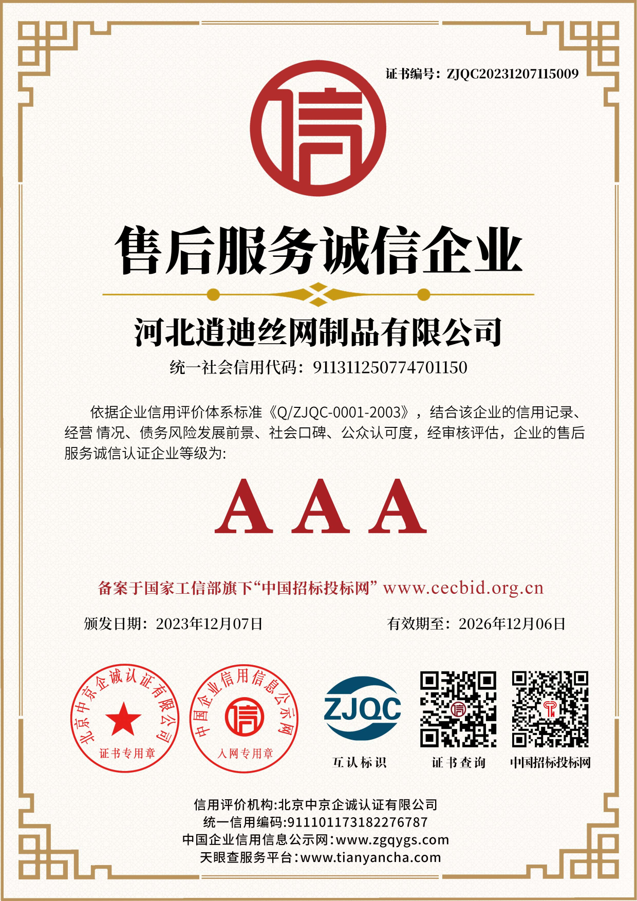 河北逍迪絲網制品有限公司誠信天下,誠信是我們公司一個原則問題不可撼動的,以心中有誠信的思想結交五湖四海的朋友,能達到雙贏是最好的,我們堅信朋友多了路好走,我們公司都是老朋友多,我們一直是這樣做的。河北逍迪絲網制品有限公司成立于2013年注冊資本壹仟伍佰萬整,主要生產沖孔網,鋼格板,金屬防蟲網,如實的實體廠家,是一家-研發-銷售-生產-安裝-售后一條龍公司,2019年通過了ISO 9001認證管理體系符合GB/T 19001-2016/ISO 9001:2015標準,同時通過了SGS認證,擁有商標版權2品牌,擁有一個著作版權,河北逍迪絲網制品有限公司位于中國有名的(絲網之鄉)安平縣,于天津,北京,雄安,石家莊相鄰,交通非常發達,出口可以選擇天津港口非常近每天都有接貨送貨往返車輛,空運可以選擇石家莊正定機場,附近也有鐵路運輸,當地還有兩個生態物流園區發往全國各地,我們沖孔網工廠生產設備有:普通沖壓機,高速沖壓機,自主研發小微孔沖壓機,龍門沖,磚塔沖孔,重型沖孔機,萬瓦級別激光切割機,3000W激光切割機,焊接設備,折彎機,校平機,剪板機,精密校平機,(對板面平整度要求苛刻的客戶群體0.5-0.2誤差)我們公司銷售市場沒有局限性國內國外都供應,擁有出口權...